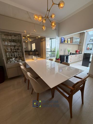 ✅ Sala de jantar planejada com cristaleira e mesa embutida para 07 lugares,